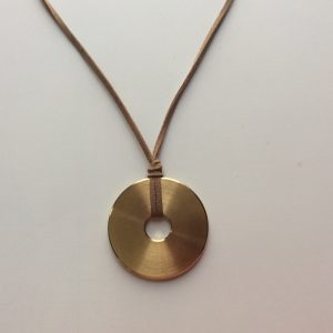 Brass pendant on adjustible leather string